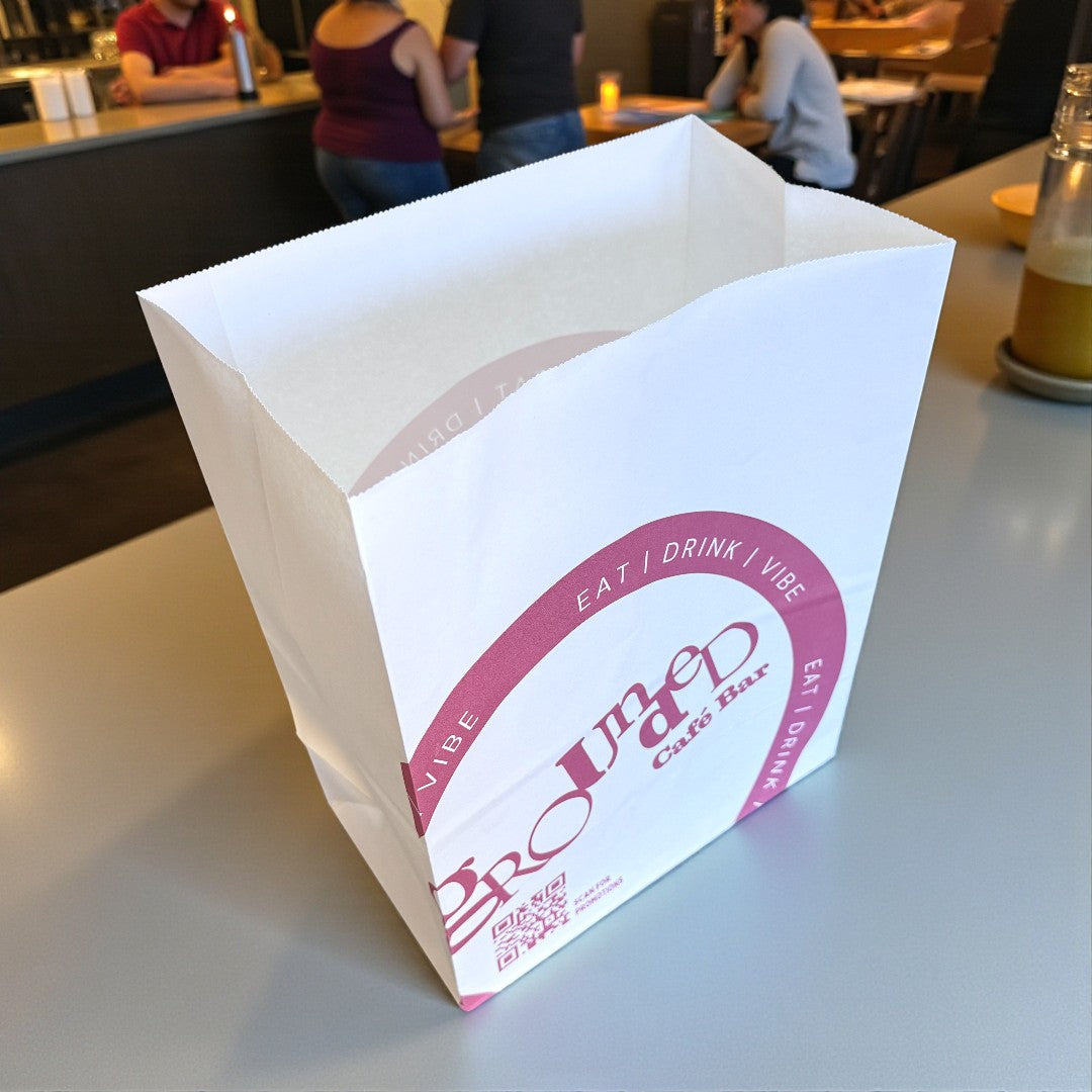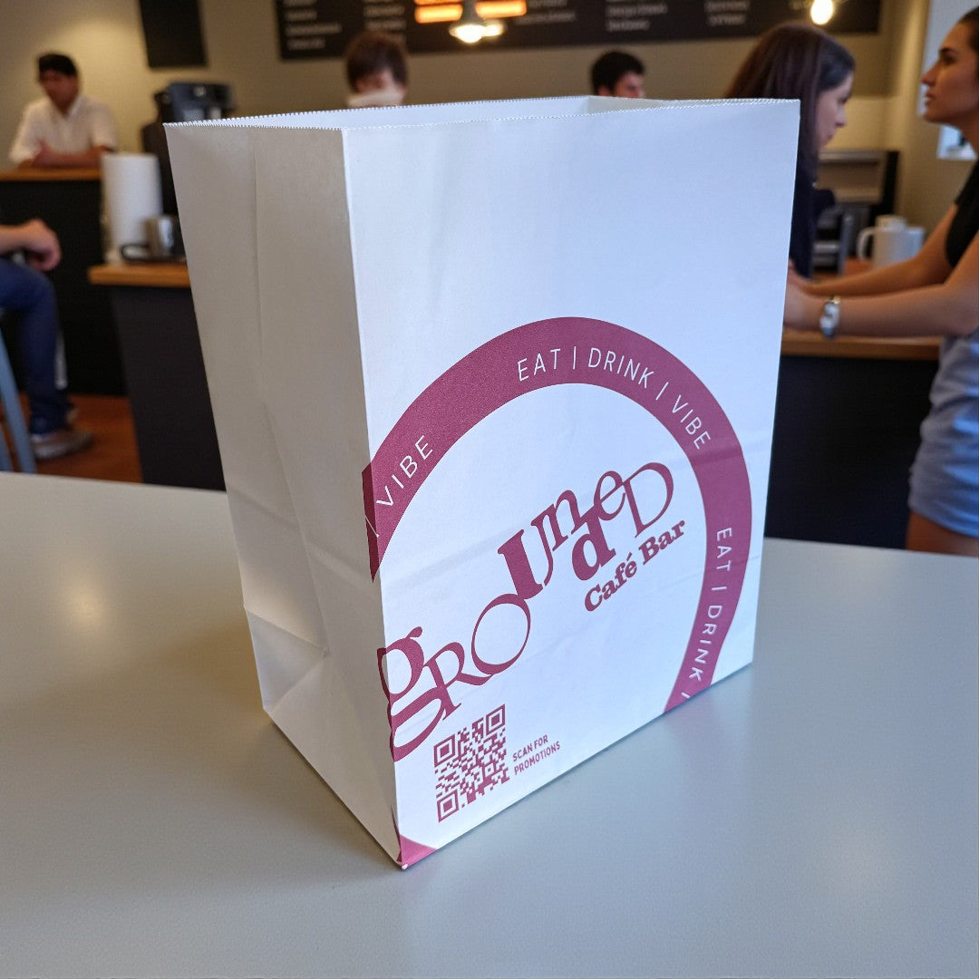 These GCB White Grab Bag 250x150x320mm come in a convenient pack of 500, offering an eco-friendly and versatile solution for packaging needs. Their sturdy white paper construction provides reliable support for a variety of items, making them ideal for takeaway, retail, food service, and everyday use. The ample size and strength ensures your items are well protected while maintaining a clean, professional appearance. Featuring the GCB logo and QR Code.