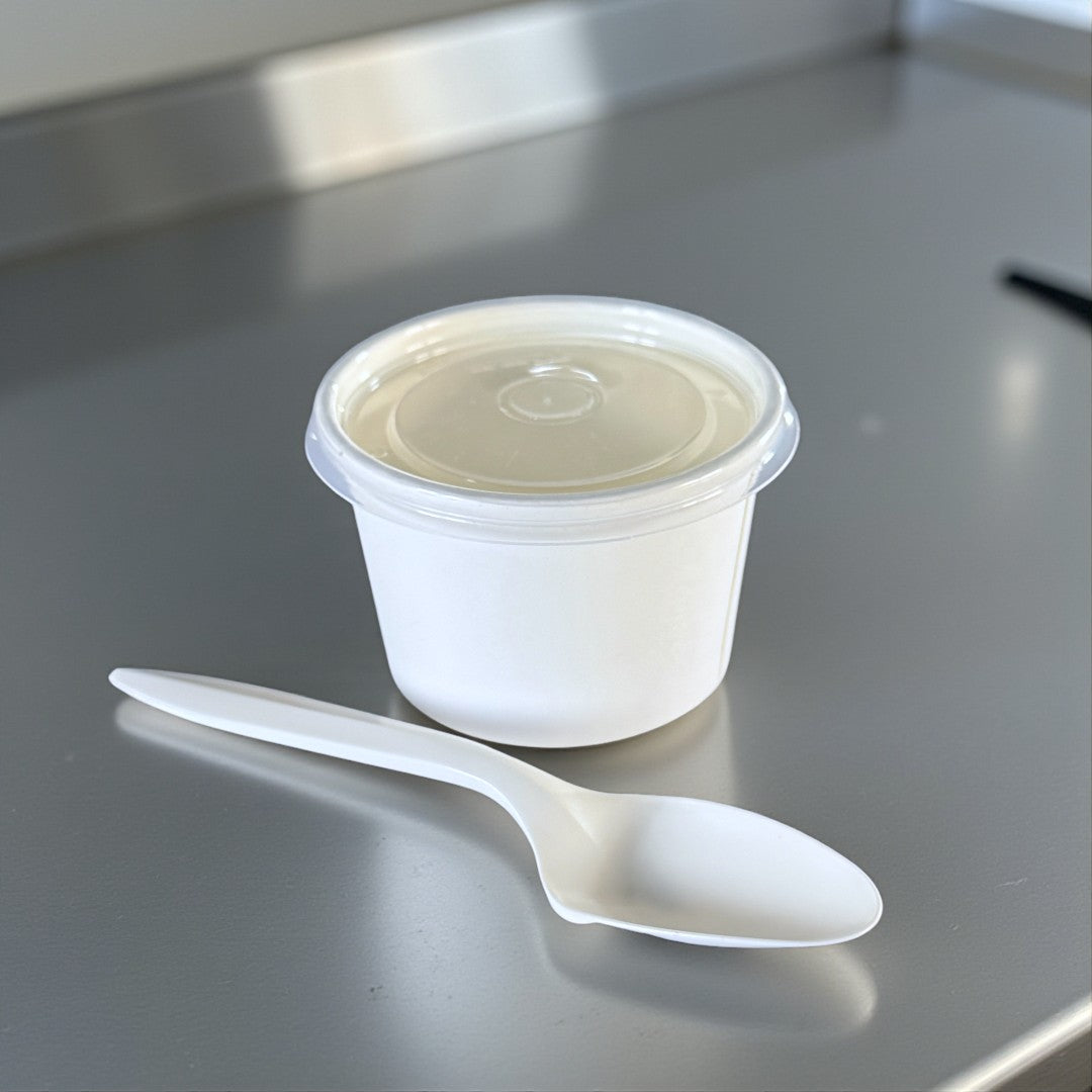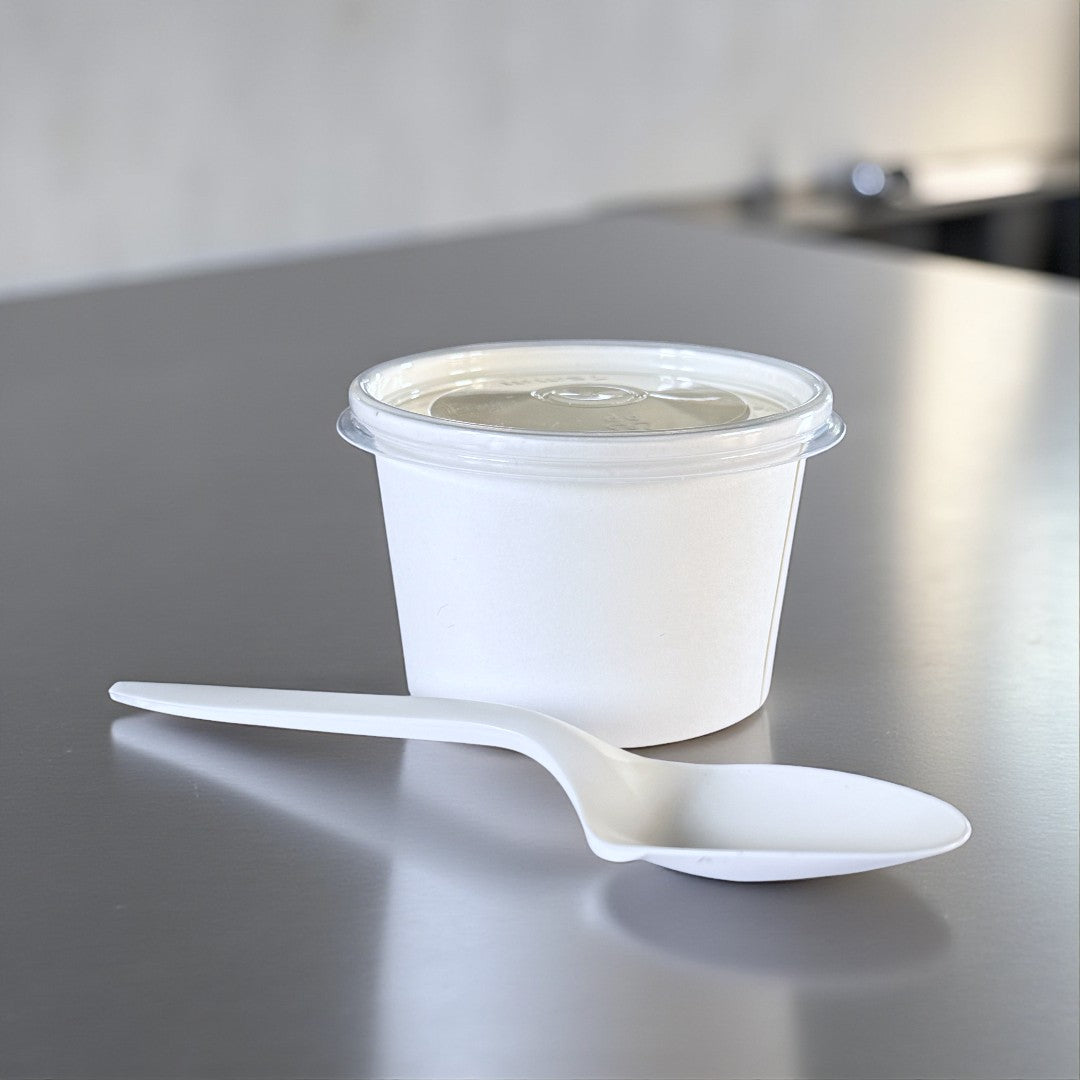 Perfect for your food service, these white kraft 4oz sauce and portion pots offer practical convenience in bulk. Each 4oz pot comes with a secure-fitting clear PP lid, ideal for packaging condiments, dips, sauces, and small portions such. The white kraft material provides durability while maintaining an eco-conscious appeal. Supplied in packs of 500, the superb 4oz portion pots are perfect for high-volume takeaway, catering, and restaurant needs. The stackable design saves storage space, and the neutral white finish complements any brand presentation.